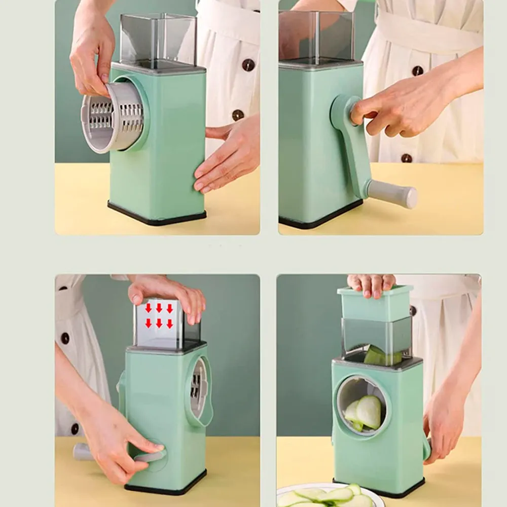 Com o Cortador e Fatiador Multifuncional, você pode fatiar e ralar uma grande variedade de alimentos, como queijos, batatas, cenouras, pepinos e muito mais. O design inteligente e seguro garante que você possa manusear o aparelho com facilidade, sem risco de acidentes, enquanto as lâminas de aço inoxidável proporcionam cortes precisos e consistentes.